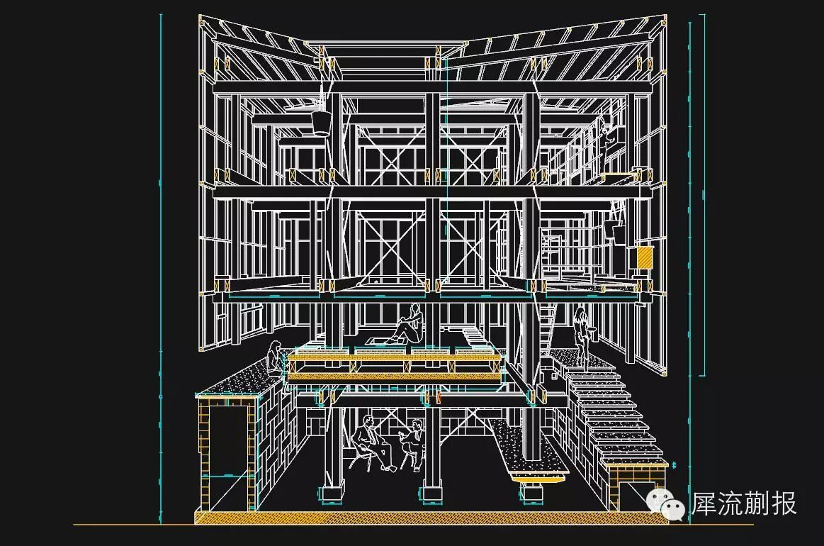 对于rhino的话,不论是要绘制剖面还是剖透视,我们都有无数种方法,其中有着很多小技巧,就以我们之前刚做的美食之家的图作为案例给大家一一道来吧,那么下图就是我们成图的目标了~~~~