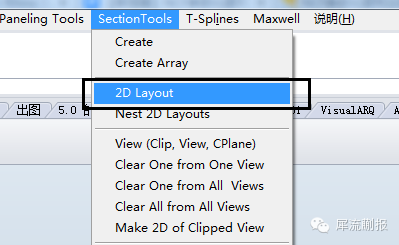 然而我们的要求肯定不会这么低,那么我们要怎么做呢?首先,rhino自身的剖切面是不能被make2D的,这就意味着我们没办法得到剖切面的线稿再进行深加工。那怎么办咧?如果我们想要之前那张吊炸天的图怎么办呢?这就要隆重介绍我们rhino的一个剖切插件了~~sectiontool!