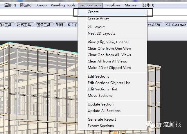 这是一个简单好用却很强大的rhino插件,下载后直接双击安装就可以了,我们来简单看看使用方法,毕竟这个插件本身就没几个命令,首先第一步,菜单栏点击create然后全选所有想要加入剖切的物体来创建剖切位置。