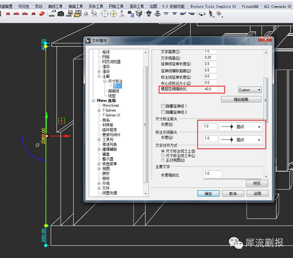 尺寸标注的话大多数和cad是一致的,比较需要注意的是空间缩放比,其他的各位用了这么久的cad看着设置就行了,我们采用和原图的圆点形式的标注。