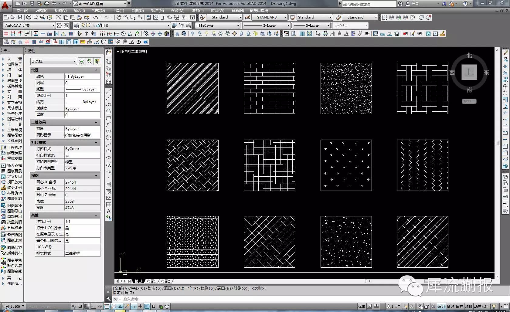 首先,在cad当中把你想要的或者可能用到的填充图案都画出来,如下。