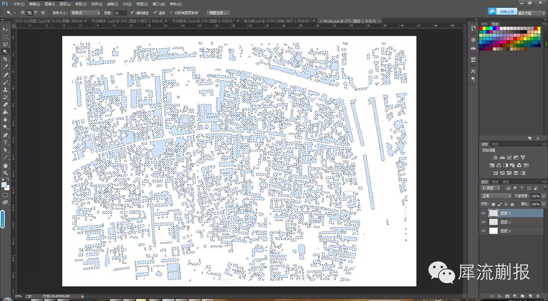 导进ps,一个反选,就填完了,如果你比较懒的话,你甚至可以选择上个颜色,然后渲染·····是的,然后渲染,叠线框。