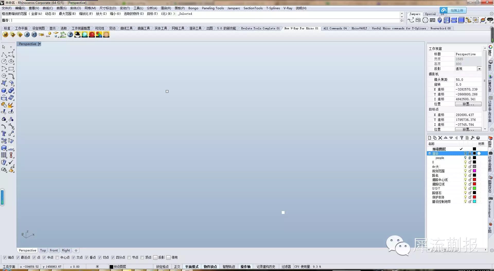 不用急,很多cad导入rhino都会有各式各样的问题,本案首先是cad有高度,你得用设定xyz坐标命令来把所有cad线拍平到一个平面上,需要注意的是,有的cad导入的图块是有高度的,而有高度的图块是没办法被拍平的,得炸开再拍
