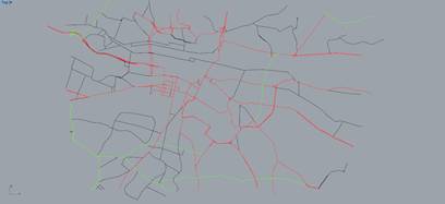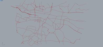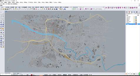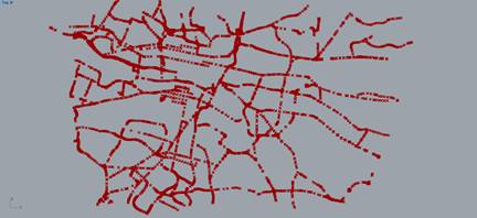 此时已把主要道路的所有数据以点位的形式在rhino界面中呈现
